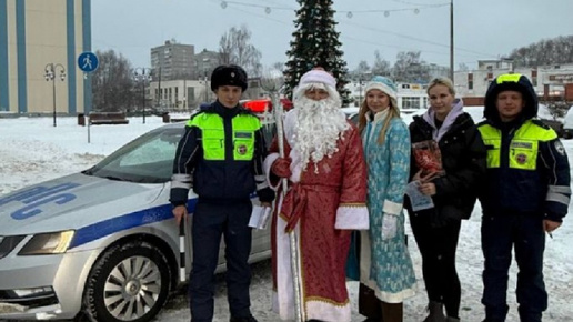 В Радужном сотрудники ГАИ вышли на патруль в образах Деда Мороза и Снегурочки