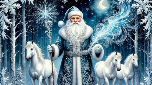 Тройка белых лошадей пришла к нам из 18 века, и считается традиционным средством передвижения по белу свету главного зимнего волшебника нашей страны. В конную упряжку обязательно входит дуга, соединяющая трёх скакунов, на которой висит колокольчик, чтобы предупреждать о приближении саней. Только в России придумали такой способ оповещения, в других странах сзади кареты или саней сидел человек, который всю дорогу трубил. У Деда Мороза всегда были высокоскоростные лошадки. Они описываются, как рысаки, так как на Руси не было лошадей быстрее рысаков...
