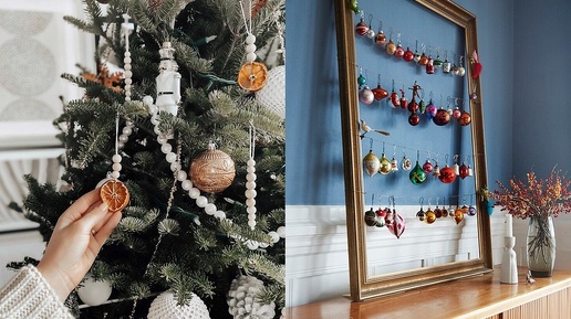 Самое время начать подготовку к праздникам и успеть сделать декор собственноручно! Делимся идеями: от классического подсвечника до импровизированной елки. Если у вас скопилась большая коллекция елочных украшений, то развесить все на елке может не получиться. Некоторые из них можно использовать для создания декора в рамке — как на фото. Рама понадобится большая, минимум 40х50. По бокам здесь закрепили тросики, а на них развесили самые разные елочные украшения — цветные, разноформатные. В качестве веревочек можно также использовать джутовую бечевку, прозрачную леску...