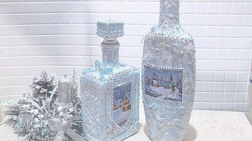 Декорируем бутылки к Новогоднему столу из манки и клея ПВА.