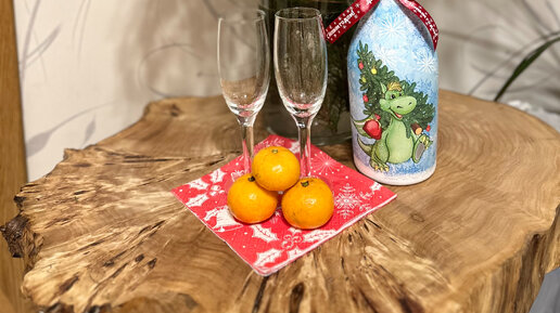 Декупаж бутылок. Новогодний декор своими руками. Декупаж салфетками.