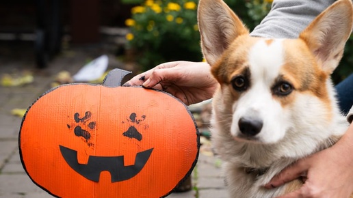 Моя корги - художник! Или как мы вместе сделали хеллоуинскую гирлянду своими руками и лапами.