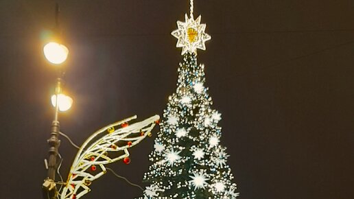 Как быстро пронеслись первые дни нового года. Весь декабрь город преображался к празднику. Украшались площади, высоченные ёлки наряжались в дивные наряды. Вечером всё светилось, искрилось, восхищало наши взоры. Волшебные ёлки Петербурга ещё постоят немного, а потом исчезнут по взмаху волшебной палочки. И мои новогодние слёзы тоже высохнут. Останется только память... об этой искромётной красоте. Вот такая изумительная барышня украшает площадь Восстания, в центре Невского проспекта. Пришлось обрезать кадр, потому что незнакомый мужчина шёл мне навстречу...