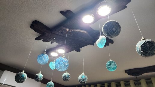 Не так давно мы заметили: дерево и новогодний декор – идеальное сочетание. Деревянная поверхность не конкурирует с яркими игрушками, а, наоборот, приглушает их блеск, делая его мягче и благороднее. В результате шары не «кричат», а словно светятся изнутри, будто маленькие волшебные фонари. Все началось с… ватных игрушек. Я загорелась идеей сделать парочку на пробу и купила набор миниатюрных крючочков – для подвешивания ватных игрушек на елку. Разложила их на ладони – и ахнула: они идеально подходят для подвешивания шаров на наши деревянные светильники, как я давно мечтала...