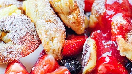 Десерт. Царский омлет с черникой и клубничным муссом.