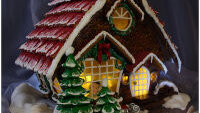 Пряничный домик Продукты Пошаговый фото рецепт Пряничный домик Замесила 2 порции пряничного теста (на домик с учетом мелкого брака и черепицы ушло практически все). Ночь оно, как положено, провело завернутым в пленку в холодильнике. За 2 часа до выпечки я его вынула чтоб оно немного размягчилось и пришло в себя, так его легче катать. Раскатывала прямо на противне, чтоб не мучиться с переносом вырезанных деталей. Делала оттиски при помощи текстурных ковриков, отправляла в морозилку на 3 минуты,...
