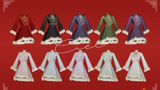 Встречайте очаровательный сет 【Ciel】 New Year, включающий современное китайское платье в 10 цветах и высокие чулки с 4 вариантами длины! Идеальный наряд для Sims, чтобы отпраздновать праздник стильно и элегантно...