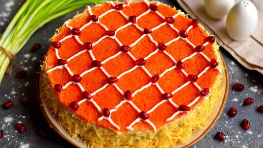 Эффектный салат для праздничного стола, имеет интересный и яркий внешний вид, а также отменный вкус. Салат формируется слоями, пропитанные майонезом. Сочетание вареной курицы и жареных грибов в салатах считается беспроигрышным, это всегда вкусно. Верхушку блюда украшает красочная морковь и зерна граната. Ингредиенты: Приготовление: Свежие шампиньоны вымойте, нарежьте небольшими кусочками. Репчатый лук очистите, нашинкуйте кубиками. Грибы обжарьте совместно с луком 5 минут до готовности. В процессе смесь посолите и поперчите, периодически перемешивайте...
