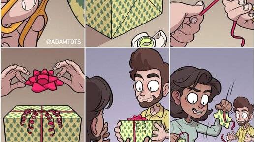 Ну что, признавайтесь, успели уже получить какие-нибудь подарки? Если даже и нет, то конечно же, еще все впереди, потому что Новый год только через пару дней. Само собой, в такую предпраздничную пору количество новогодних и рождественских комиксов в сети просто зашкаливает. И да, многие из них посвящены теме подарков: что купить, как завернуть, каким образом преподнести и все в таком духе. Как обычно я постарался выбрать для вас все самое лучшее по заданной тематике. Надеюсь, что вам понравится....