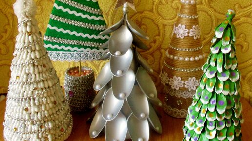 5 идей новогодних елок из разных материалов.Поделки на Новый год.Поделки своими руками.
