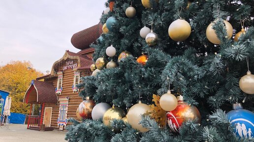 Есть в Москве место, где новогоднюю елку можно застать нарядной в любое время года. Несмотря на осень , тепло задержалось в Москве и радовало солнцем и почти +18 С. Как неожиданно из - за золотой листвы показалась нарядная Новогодняя елка: Но сначала из никоткуда вдруг показались великаны. Они стояли рядами за небольшим заборчиком, как будто он мог их остановить , если бы они собрались сбежать. Человеку же не под сиду было сдвинуть их и вдесятером. Взрослые больше , чем дети радовались неожиданной находке...