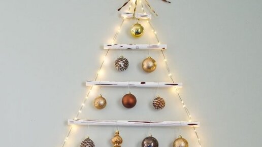 Ёлка на стене из гирлянды - украшаем дом к Новому году.