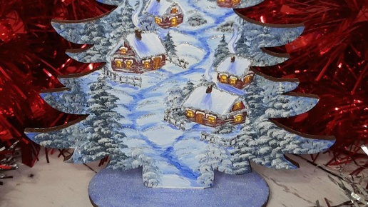 Всем доброго дня! Очень мне понравилось расписывать дерево- поэтому готова еще одна елочка! Деревянная елочка на подставке, расписанная с двух сторон с деревенским пейзажем. Как недавно прочитала в одном комментарии- портал в рождественскую ночь!)) Очень подходящее название)) Украсит ваш дом, рабочий стол, создаст праздничное настроение и новогоднюю атмосферу...