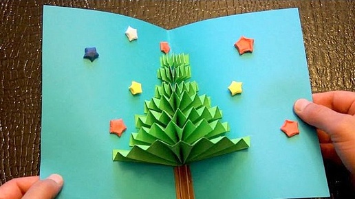 Открытка на Новый Год с объемной ёлочкой внутри. Открытка своими руками из цветной бумаги