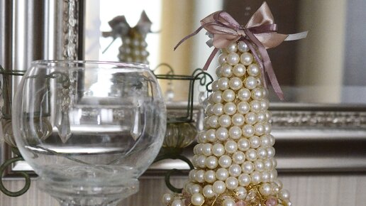 Как сделать, необычную новогоднюю елочку из искусственного жемчуга, своими руками. Мастер-класс.