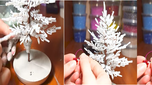 Будем делать ёлочку из стекляруса. Кстати его Вы можете заменить на обычный вид бисера. И с цветом определитесь сами. Наша лесная красавица будет красивого белого оттенка. Словно под снежной шубкой...