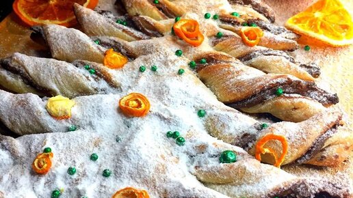 Ингредиенты: теста дрожжевого слоёного, нутеллы, сахарная пудра Способ приготовления: Раскатать слоеное тесто. На Один пласт теста намазываем нутеллу и накрываем вторым, вырезаем елку. Выпекаем при 180 градусах до готовности, когда остынет посыпаем сахарной пудрой...
