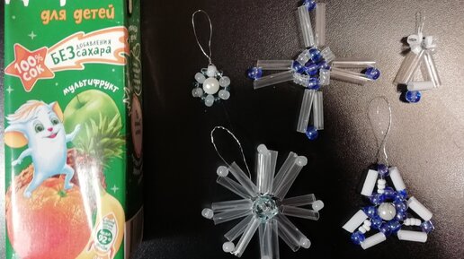 Новогодние поделки из маленьких трубочек (сок, молоко, смеси)