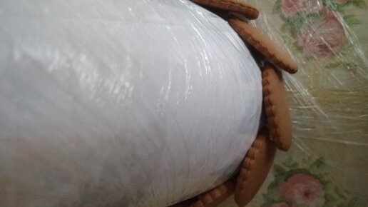 Чтобы сделать основу для моей елочки я взяла ватман и скрутила его кулечком,закрепила степлером и выровняла край ножницами,так,что бы елочка была ровненькая и конечно же обмотала пищевой пленкой...