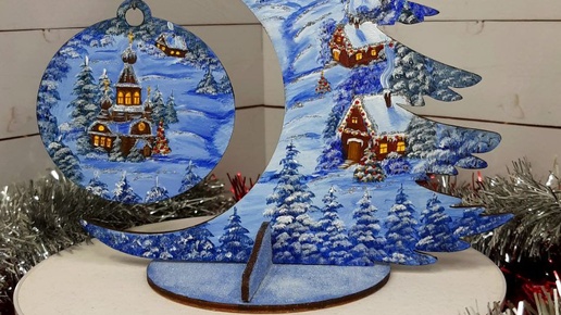 Всем доброго дня!! У меня готова еще одна елочка - с "шариком"))) Прекрасная альтернатива большой елке, если с местом проблема)) Деревянная елочка с подвесом, на подставке, расписана с 2х сторон. Ручная роспись, без декупажа! Высота 21,см, ширина 20 см...