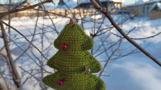 Понадобится пряжа, любая, какая вам нравится. Подходящий крючок, немного наполнителя и бусины, бантики, ленточки для декора. Ёлочка состоит из 3 частей.