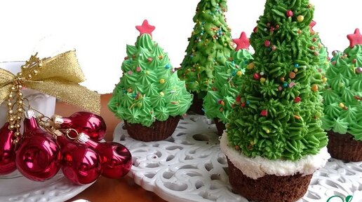 Новогодние капкейки «ЁЛОЧКИ» С СЮРПРИЗОМ ВНУТРИ🎄