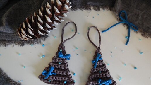 На Новый год и Рождество хочется украсить дом и елку новогодними украшениями. Сделать их можно и самим. Например, можно связать крючком елочку из трикотажной пряжи.