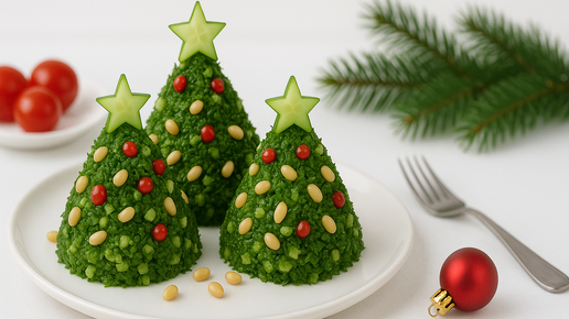 Миниатюрные закуски в виде пушистых «ёлочек» — эффектные, нежные и невероятно простые. Готовятся за 10 минут, выглядят как ресторанная подача и идеально подходят для праздничного стола. Смотрите рецепт, сохраняйте и удивляйте гостей! Я люблю блюда, которые не требуют долгих часов у плиты, но выглядят так, будто их готовил шеф-повар. Эти «ёлочки» именно такие: свежие, лёгкие, нарядные и удивительно простые. Салат получается плотным, нежным и отлично «садится» через кондитерский мешок. Даже если вы готовите впервые — всё выйдет аккуратно, ровно и празднично...