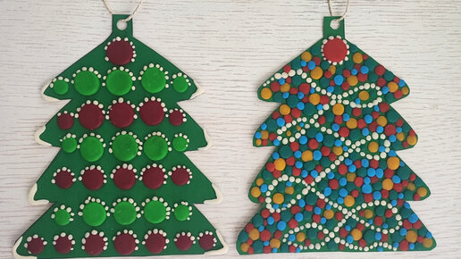 Новогодние ёлочки из пластилина на цветном картоне. Пошаговая инструкция с фото для детей.