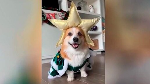 Видео с вельш-корги-пемброком в костюме нарядной елки с кокошником в виде золотой звезды выложила в Сеть пользователь портала «Ридус», поздравляя читателей с наступающим Новым годом. В ролике пса наряжают в темно-зеленую мантию, подбитую белой меховой оторочкой, а на голову надевают пухлый золотой кокошник в виде звездочки. В таком виде корги становится похожа на новогоднюю елочку, а добродушная улыбающаяся мордочка добавляет очарования и предновогоднего умиления...