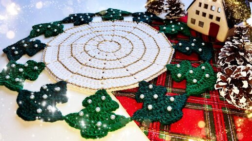 Салфетка сервировочная "Елочка" крючком описание | новогоднее вязание