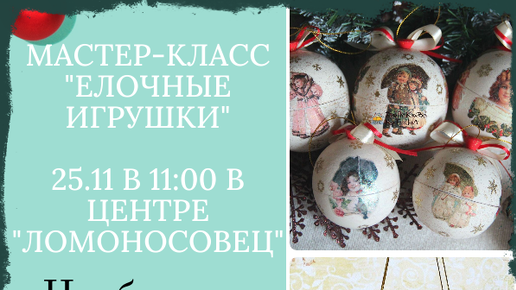 Друзья! Близятся Новогодние праздники, и так хочется волшебства! Спешим вам сообщить, что к Новому году мы решили организовать Мастер-класс Елочная игрушка- Декорирование в техниках Декупаж и Роспись. Пройдет 25 ноября в 11.00-13.00, у нас в центре по адресу: Керамический проезд, дом 45, корпус 1. Предлагаем вам сделать игрушку на Елку своими руками. Совместное творчество- это прекрасный способ провести время семьей, почувствовать приближение праздника и загадать самые сокровенные желания , кто...