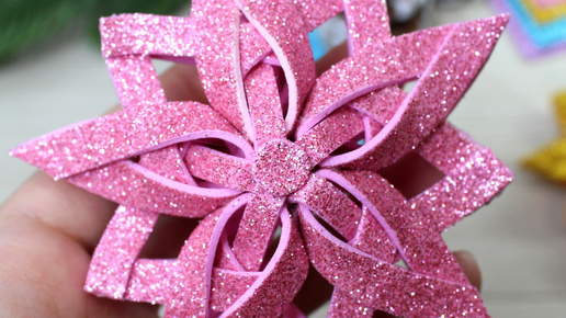 Игрушка на ёлку своими руками из глиттерного фоамирана. Красивая снежинка из фоамирана.
