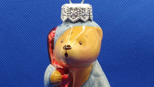 Мне посчастливилось одной из первых стать обладателем ёлочных игрушек новейшей фабрики "Белый терем". Я получила в подарок три формовых игрушки и один шар с росписью. Вернее, формовых игрушки даже четыре, одну подарили в виде голья. Гольём называется стеклянная игрушка сразу после выдувки, то есть не посеребрённая и не раскрашенная. Все три игрушки - мишки Тедди, они входят в коллекцию мишек. Давайте рассматривать) 1. Мишка-мухоморчик. Мишка Тедди - это игрушка, поэтому фигурки сделаны именно в виде игрушечных мишек, на которых видны шовчики и стежки Вот такой мишутка в шляпке-грибочке...