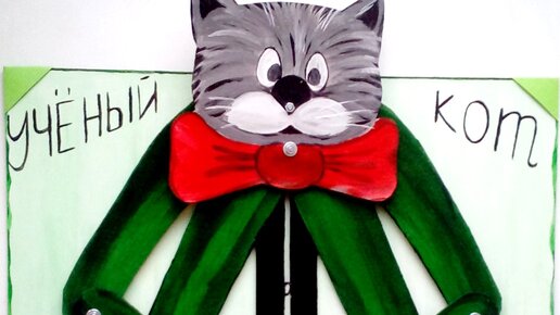 Привет, друзья! В этой статье я хочу вам рассказать об одной игрушке, которая поможет развить интерес к математике, а заодно познакомит и взрослых, и детей с примером шарнирного механизма. Сделать ее вы сможете своими руками, как это сделал я. Моя игрушка называется " Ученый кот". Вот так она выглядит: Для изготовления я использовал очень толстый и плотный картон для основных деталей( все детали и основа не должны сгибаться), более тонкий картон для дополнительных вставных шаблонов операций и уголков, болты и гайки, краски...