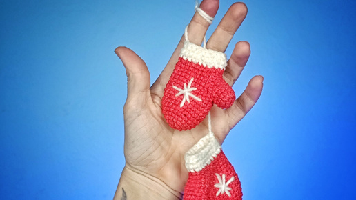 Елочная игрушка крючком "Варежки"