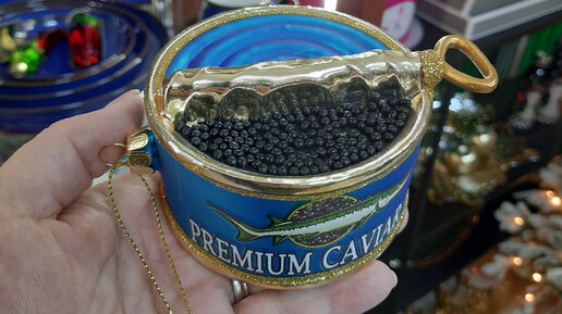 Добрый день, друзья мои! Не замахиваюсь на фундаментальное освещение вопроса, но ассортимент новогодних игрушек меня поражает! В выходные попался магазин с очень интересными игрушками. Они как раз такие, что отражают сегодняшнюю жизнь. Не дешевые, но хороши! Это, видимо, игрушка-мечта - банка с черной икрой. Забавны не только икринки осетровых, но то, как банка "открыта". Такое впечатление, что я открывала - именно так: волнисто, с острыми краями 😁. Тут бутылка и кусок пицца. Украшение для доставки еды, смеюсь...