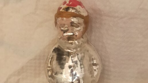 Давно мечтала иметь в коллекции эту игрушку. Но мальчики эти попадаются в весьма плохом состоянии, а хорошего да ещё и с красивой росписью найти вообще проблема. Но 2 года назад мне посчастливилось купить амальгамную версию этой игрушки, правда, в очень плохом состоянии. Хорошее фото я забыла сделать. Состояние ни о чем. Его даже кто-то пытался раскрасить заново. На спине были следы ржавчины, которые буквально въелись в стекло. Чем я их только не терла. Помог совет моей подруги - ускус и сода. Нанести и тереть...