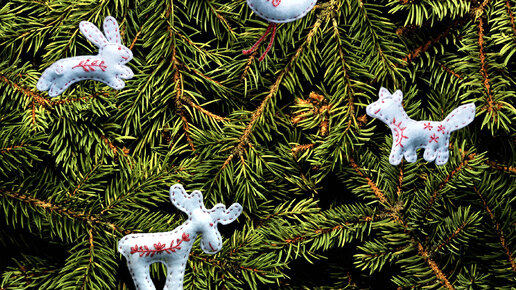 Все началось вот с этого зайца, мы его делали на мастер-классе в Уютке в двух версиях - белой и красной в двух размерах - игрушки и броши. Как его сделать я написала в этой статье. А потом я решила продолжить и сделать серию игрушек на елку и получилась вот такая коллекция, белая, так как красный фетр закончился, а ехать в магазин по такой погоде желания не было. А теперь, если есть желание, сделаем вот этого оленя. Для работы вам нужно: - небольшой кусок фетра белого цвета толщиной 1-2 мм - терморучка...