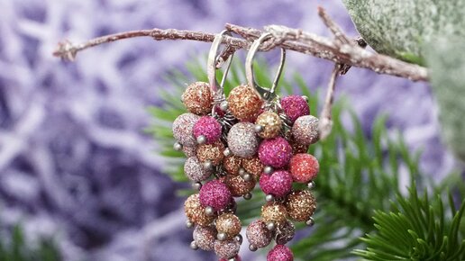 Создаем серьги-грозди с виде новогодних елочных шаров своими руками!