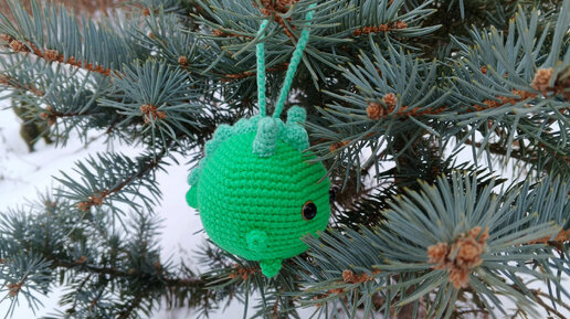 Потихоньку готовимся к новому году, а следующий год - год дракона. Возникла идея совместить елочный шар и символ года. Игрушка очень простая, используются базовые элементы вязания крючком. Уроков по вязанию здесь не будет. Мой шарик связан из "детской новинки" от Пехорки, можно взять другую пряжу и использовать любые другие цвета. Вяжу крючком №1, высота игрушки получилась 7 см с рожками. Понадобится: Условные обозначения: сбн - столбик без накида пр - прибавка уб - убавка вп - воздушная петля псн...