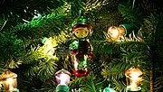 Ёлочные украшения украшения, сладости и орехи. По одному из преданий, первые стеклянные ёлочные игрушки появились в Саксонии в XVI веке