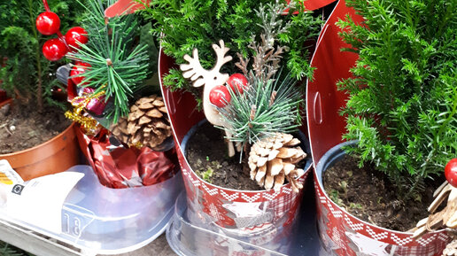 #елочный базар . Огромное количество всевозможных елок, сосен, пихт. Кому жалко срубленных елочек, можно купить в горшке. Много лесных красавиц продается по акциям. Присоединяйтесь к просмотру. Посмотрим на ассортимент живых елок и приценимся, во сколько обойдется хвойный аромат на Новый год! Поехали! Такие красавицы-ели в горшках нас встречают сразу при входе в гипермаркет ОБИ...