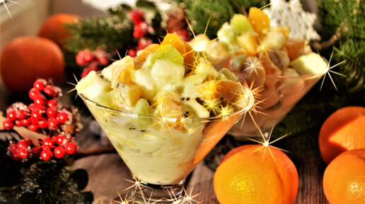 Всем привет! В новогоднюю ночь все столы буквально "ломятся" от очень яркой, оригинальной и вкусной закуски, но я в свою очередь обязательно на новогодний стол готовлю еще и детский салат, его мои девчонки не только любят и трескают с большим аппетитом, в нем очень много витаминов, которые так полезны в зимнее время. Разнообразие таких салатов огромное, можно сочетать любые фрукты и ягоды, те что любят ваши любимые детки. Я сегодня хочу предложить Вам свой вариант, и возможно он не новый для Вас, я только лишь напомню, вдруг Вы немного позыбыли...