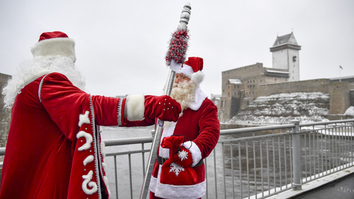 Эстонский Санта-Клаус и русский Дед Мороз встретились на мосту Дружбы