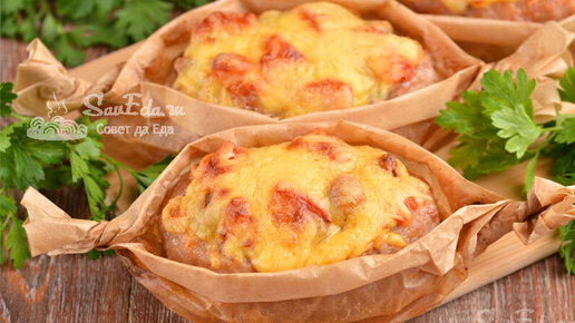 Это блюдо и выглядит красиво, и вкус у него замечательный. А готовлю его из простых продуктов. К нему и гарнира никакого не надо. Готовится очень просто и легко, можно менять наичинку и получать блюда с разными вкусами. За счет пергамента фарш получается очень сочный, а начинка дает прекрасный вкус. Порции 3 Время подготовки 30 минут Время приготовления 30 минут Ингредиенты Инструкции 1. В масле быстро обжариваем измельчнный лук (1 шт.) и добавляем нарезанные шампиньоны. Грибы можно брать любые по вкусу...