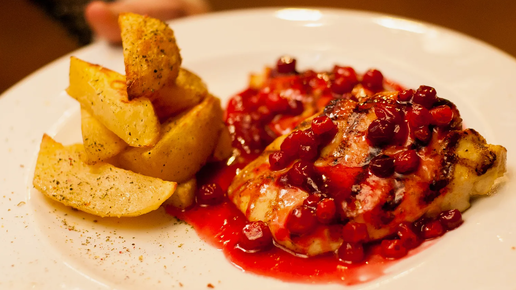 Рецепт горячего блюда на Новый год: Филе индейки с ягодным соусом и картофелем