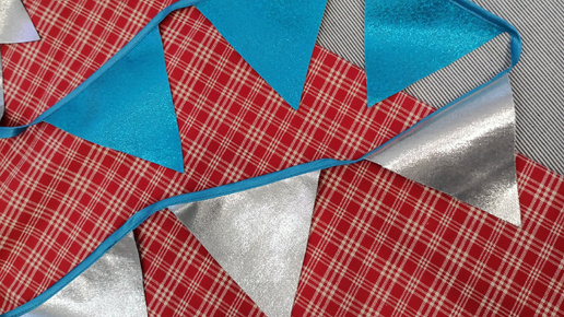 Я никогда не была фанатом различного рода флажков. Но с ростом популярности картонных флажков с новогодними изображениями в стиле винтаж, моя категоричность в этом вопросе таяла. Итак, сначала я заказала именно такие флажки, а потом крепко призадумалась..... Обычные хлопковые (льняные) красные флажки меня совершенно не устраивали. Ну, они же есть у всех!!! Мне надо что-то свое. Кроме того, Новый Год на носу, обычным красным цветом не отделаешься. Так я пришла к самому необычному и самому подходящему полотну: трикотаж диско и иное виды трикотажа с люрексом...
