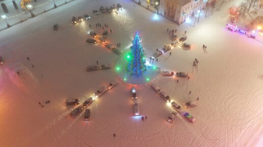 В Беларуси много активных ребят, которые состоят в различных клубах и их фантазии нет предела. На этот раз активисты из автоклуба NWC подарили моему городу красочное новогоднее представление. Собрались вокруг главной елки и выстроили из машин снежинку, которая засверкала разноцветными огнями после включения светотехники. Посмотрите как это было и оцените лайком мои фото. Флешмоб вокруг елки Данную традицию начали проводить во многих городах России и Беларуси и даже мой маленький город не стал исключением...