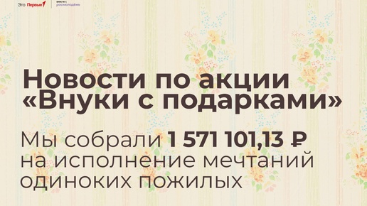»! С вашей помощью мы собрали сумму 1 571 101,13 рублей для исполнения новогодних желаний 39 одиноких пожилых людей из пяти регионов России. Спасибо каждому, кто сделал пожертвование! ✨ Особая благодарность нашим партнерам IT-компании «Братство кодеров» — за ностальгический дизайн и функциональный сайт нашей акции. 🎄 Главная особенность «Внуков с подарками»: после исполнения мечты подопечные не останутся одни. Наши волонтёры из проекта «Стабильная поддержка» продолжат их навещать, даря общение и постоянное внимание...